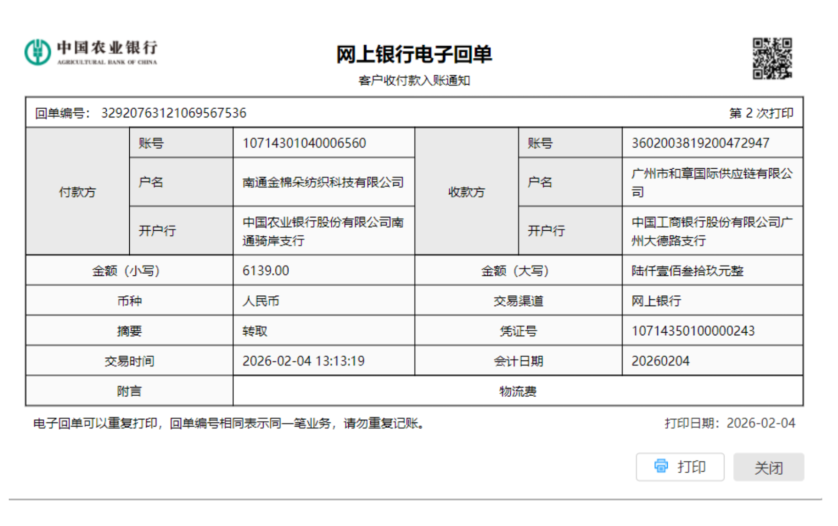 2026年2月10日 17:21 49821 2026.02.10C-TD付2月份运费水单.png